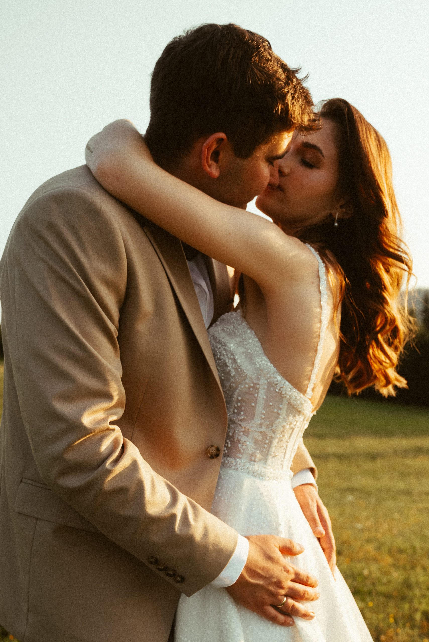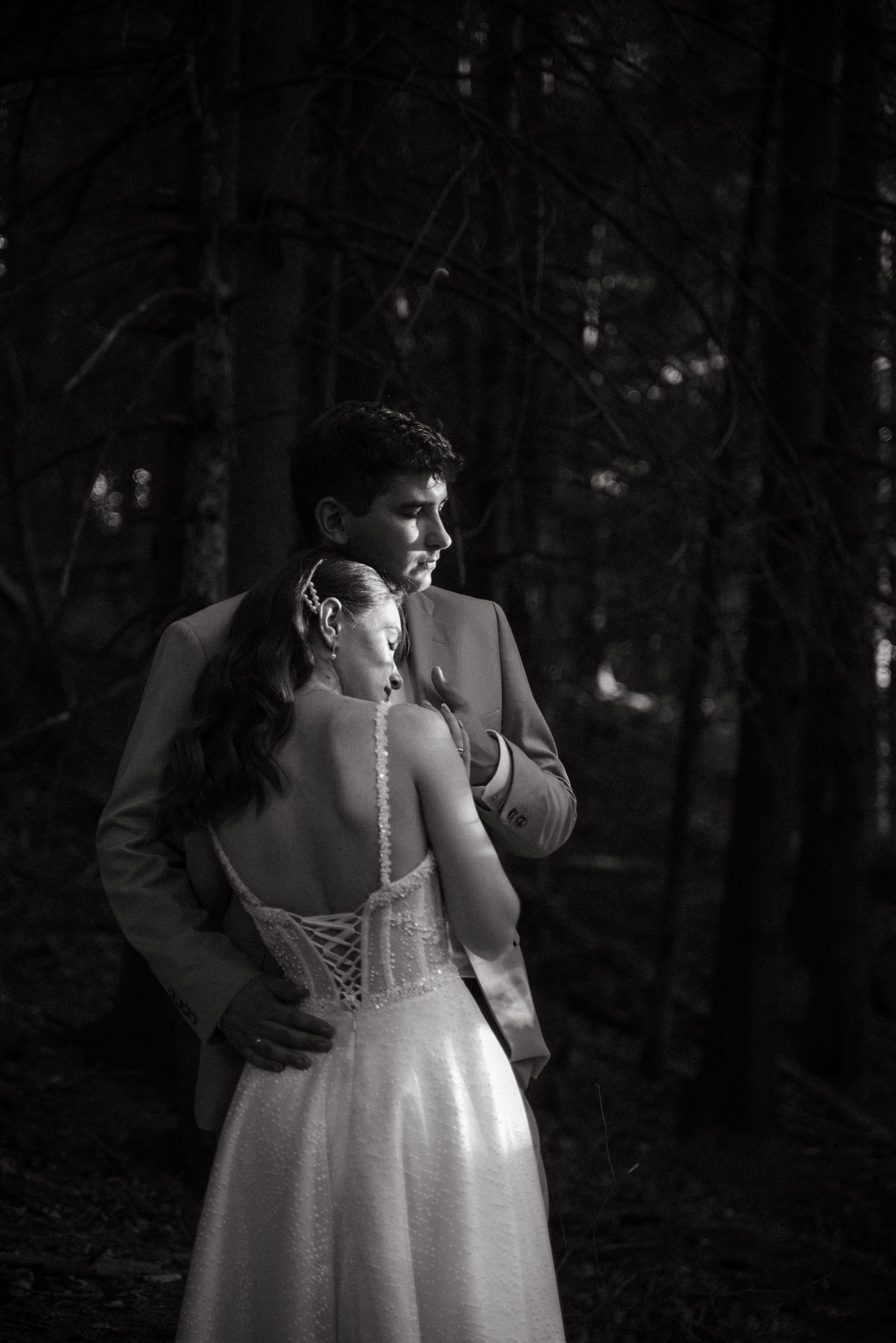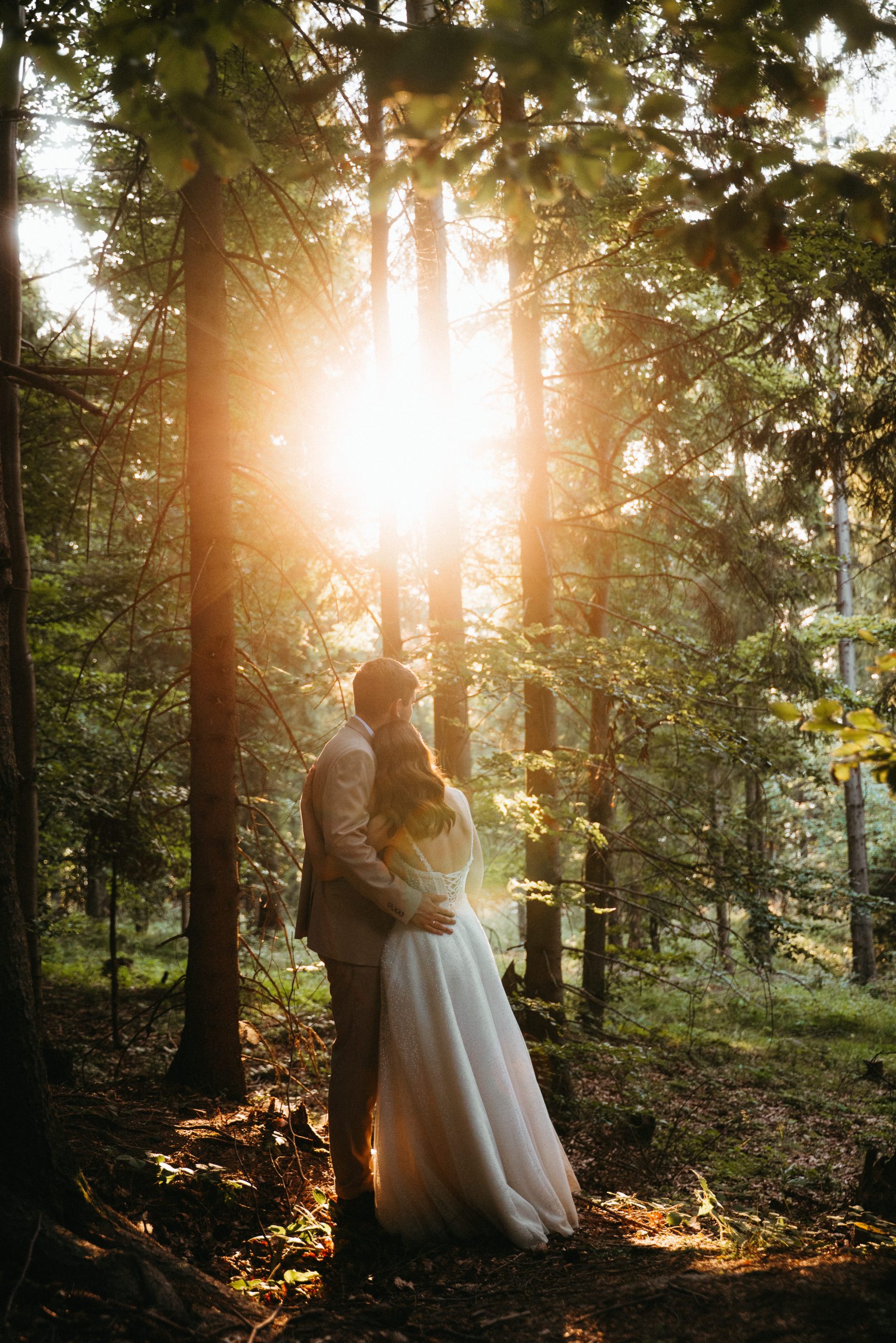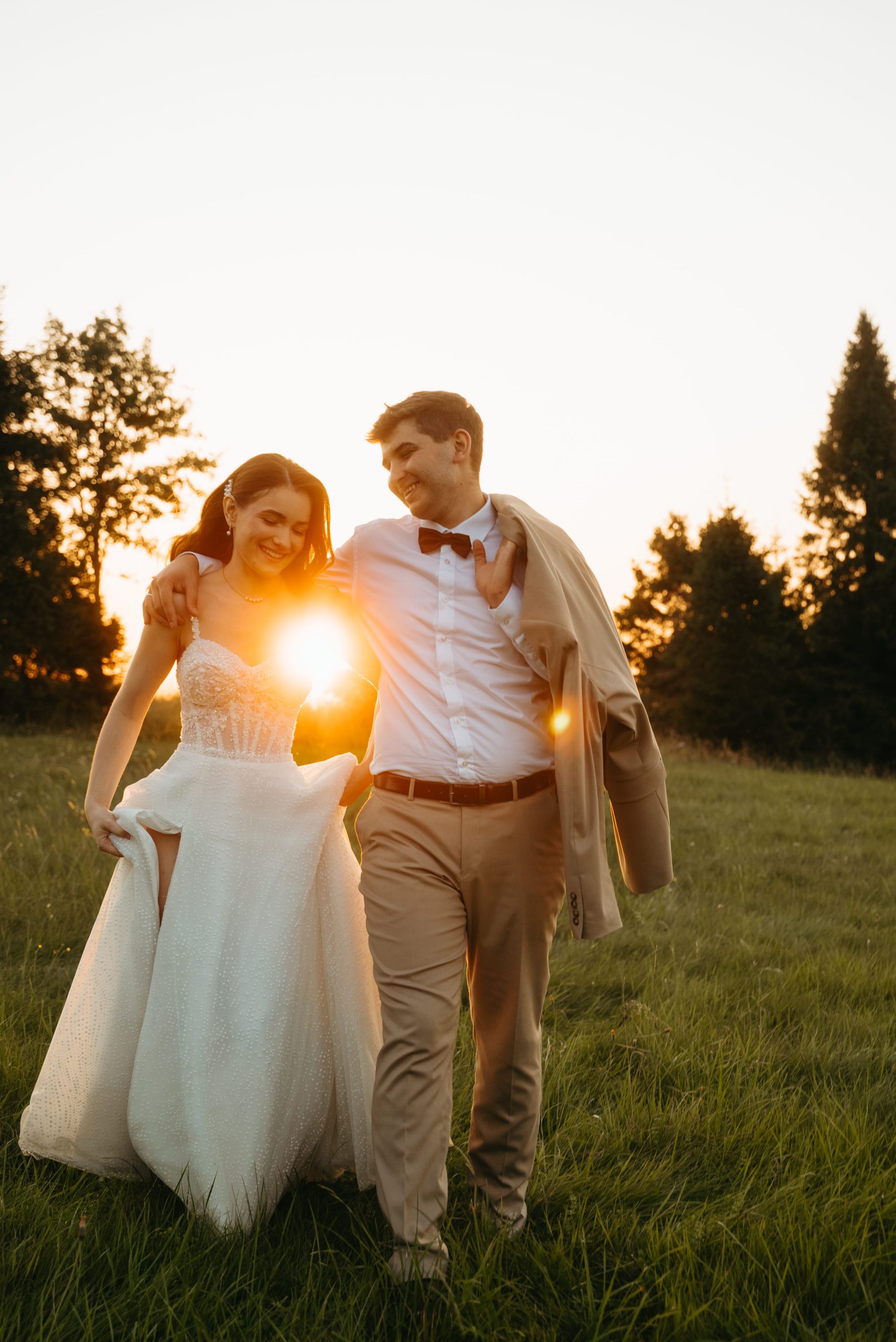 Góry dają przestrzeń. Dosłownie i symbolicznie. Pozwalają wyjść poza codzienność, odciąć się od hałasu i skupić na tym, co najważniejsze — na relacji. W Beskidach wszystko dzieje się naturalnie: wiatr porusza suknią, światło miękko opada na twarze, a zachód słońca tworzy spektakl, którego nie da się powtórzyć ani zaplanować co do minuty. Każda górska sesja jest inna, niepowtarzalna, zależna od pory dnia, pogody i emocji, które para wnosi ze sobą.